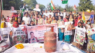 पदयात्रा को संबोधित करते हुए महिला कंाग्रेस अध्यक्ष श्रीमती रूचि गुप्ता ने कहा कि मंहगाई जिस दौर से गुजर रही है उसमें रसोई गैस एक हजार की होने से महिलांओ के घर का बजट गड़बड़ा गया है, घरो में चुल्हा है, लकड़ी, कंडा महंगा है चुल्हा जल नही पा रहा है, मिट्टी का तेल मिल नही रहा है इसलिए स्टोव पर खाना बन नही पा रहा है, सब्जीयां मंहगाई की और बढ़ रही है, आज मां. बहन, बहु, बेटी भाजपा में सब्जी रोटी मंहगी करके गरीब वर्ग को खाने को मोहताज कर दिया है। गैस सिलेंडर की अर्थी निकालकर मेादी की मंहगाई को बेनकाब किया।